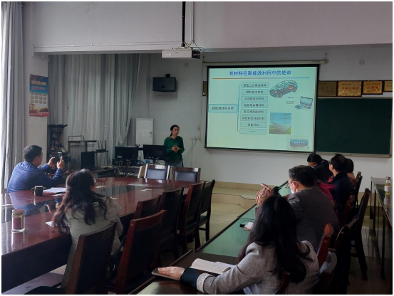 在报告中,宋燕简介了中科院山西煤炭化学研究所炭材料在新能源材料与器件中的应用等研究,详细阐述石墨烯材料在新能源材料中的应用,硅/炭负极制备及电化学性能研究,纳米炭纤维无纺布比表面积和孔结构的调控,改善其电化学性能的研究,高性能碳纤维及其复合材料、特炭/石墨材料、功能炭材料的研究工作。在座谈交流阶段,宋燕对新能源材料与器件专业课程设置,专业发展方向,未来发展和就业前景等进行了详细的指导。同时,就课程思政教育方面举例分析,如,能源概述和能源物理化学教学可以帮助员工思考能源与国家安全的关系。能源安全问题事关国家稳定,是国家安全中的重要内容。国际上关于能源引发的冲突常常被报道,因此引出与能源相关的安全问题,使员工理性分析和评价国家利益与能源安全的密切关系,进而培养员工的国家意识和全球视野,增强员工社会责任感。